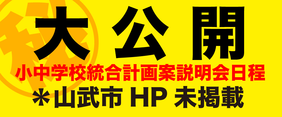 教育委員会がHPなどで公表していない山武市小中学校統廃合案の説明会の日程表を山武ジャーナルで公開しておりましたが、5月13日の松尾中学校での説明会は日程が変更となり、すでに終了して…