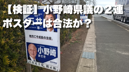 山武ジャーナルは、4月の山武市長選挙に立候補を表明している小野崎正喜県議が、市内に掲示している「2連ポスター」について、公選法上かなりグレーな掲示物であることを指摘しました。 この … 続きを読む 【検証】小野崎県議の2連ポスターは合法か?