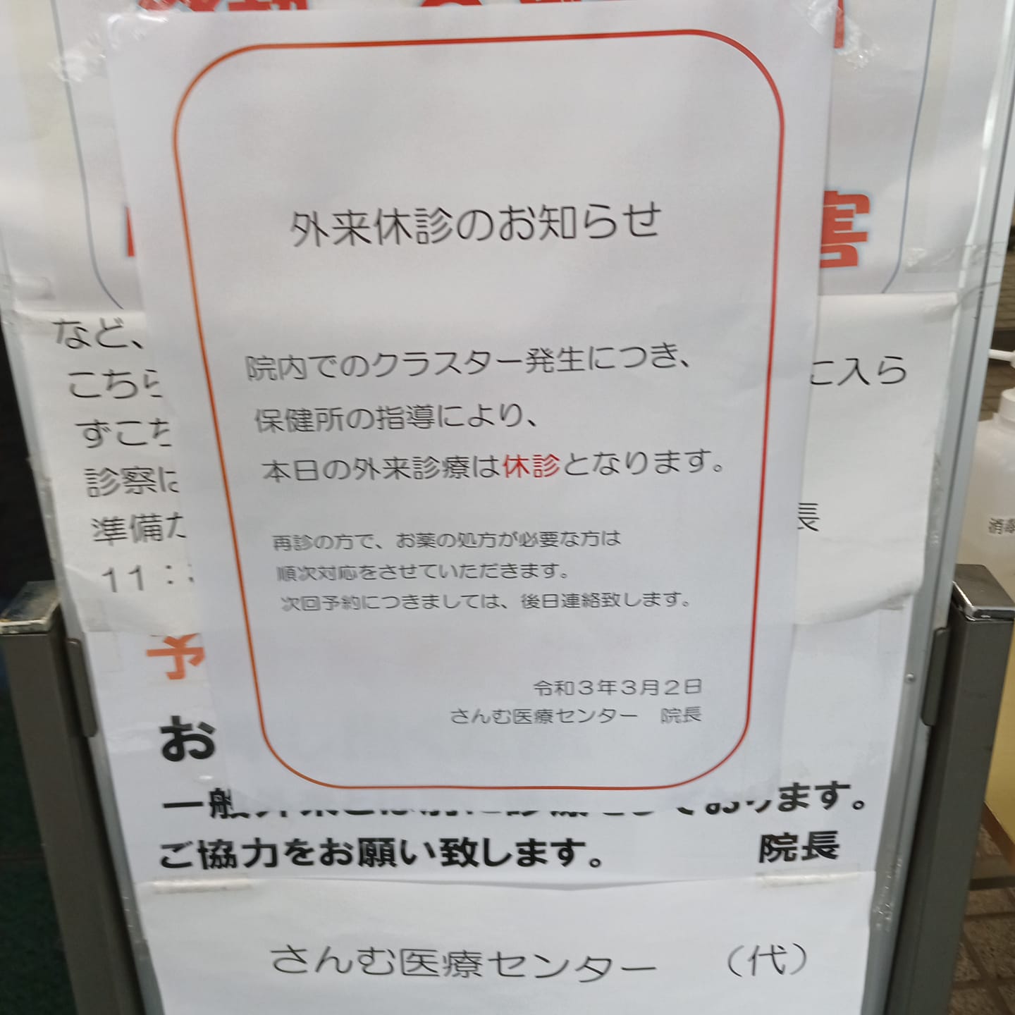 クラスター発生を受け、現在同センターでは外来診療を休診している。