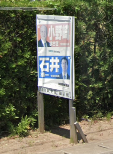 最後に、Googleストリートビューに残っていた、小野崎県議の以前の2連ポスターもご紹介しておきます。